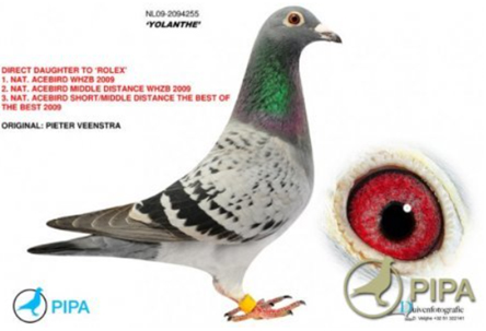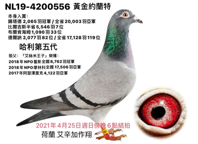●母鴿:NL09-2094255 “約蘭特”,超級種母,為”精工號”的全妹鴿
