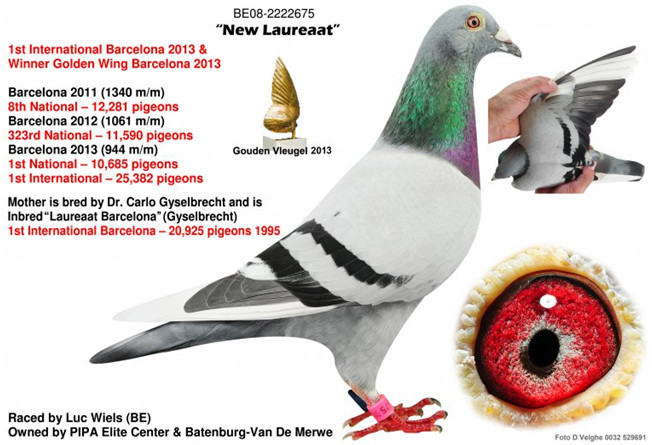這羽新榮耀號BE08-2222675灰白羽公鴿,是比利時近十幾年在超長距離巴賽隆納國際賽上,大家公認飛得最好的一羽長距離鴿,不但是入賞巴賽隆納國際賽冠軍,更是獲得至高無上的三年巴賽隆納國際賽金翼獎鴿王冠軍的頭銜,在血源上更是無以倫比的純種凡布利安納系,可說是集一身榮耀加上高貴無比的貴族血源,在各方爭相搶購下,最後是以$25萬歐元(當時匯率相當於$1千萬新台幣)為比利時PIPA和巴滕伯格聯合成功引進。