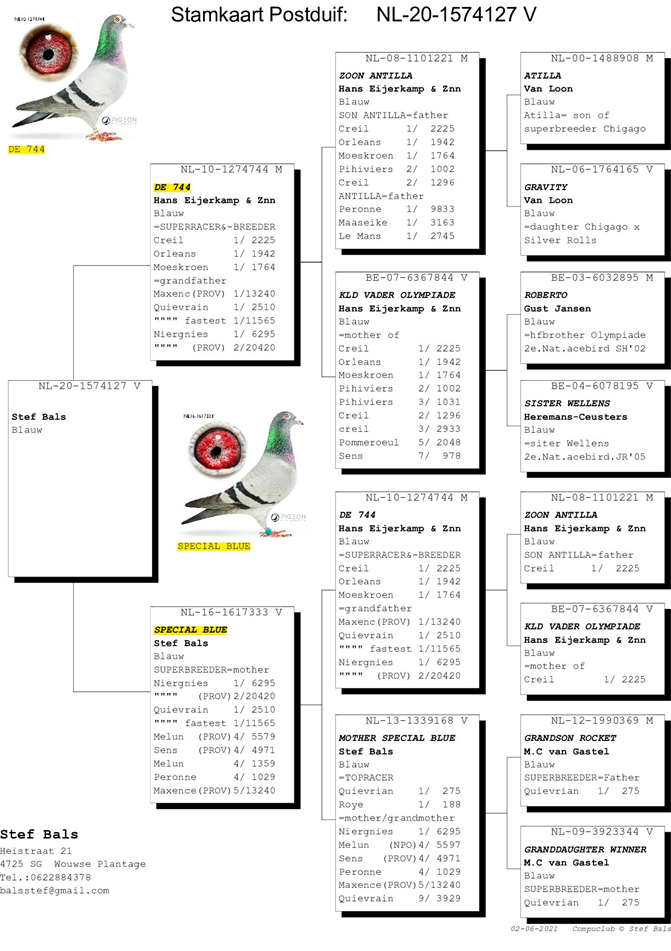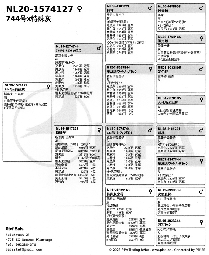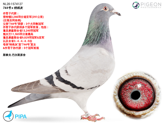 ●父鴿:NL10-1274744 “ 744號”,艾爾卡普原舍頂級種公,