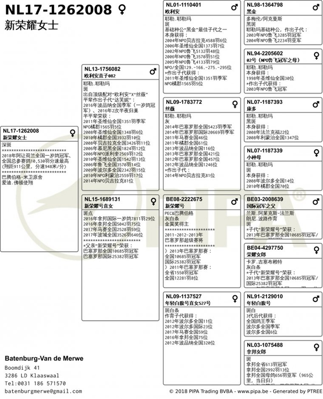阿讓國際賽荷蘭全國10.530羽總冠軍鴿NL17-1262008班母 中文翻譯血統書