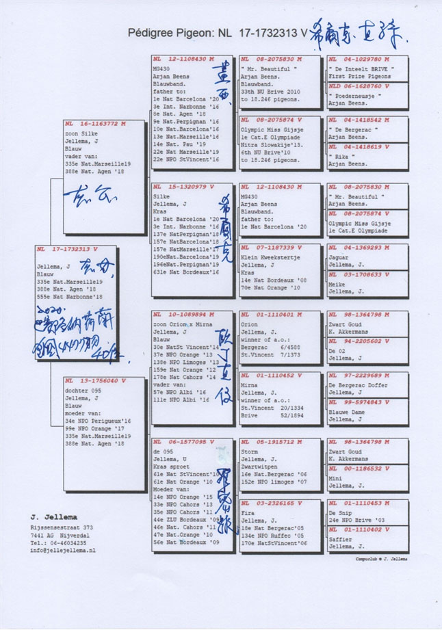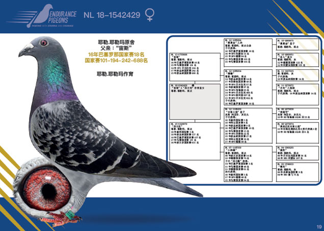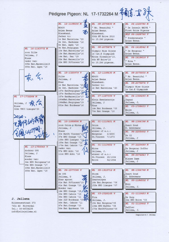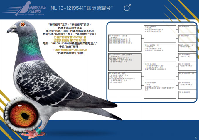 ●祖父鴿:BE08-2222675 “新榮耀號”,由PIPA與雨果•巴滕伯格聯合引進(盧克•威爾斯使翔)