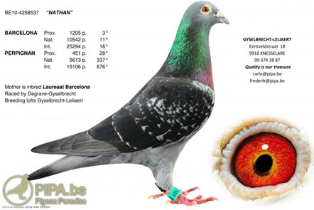 作出直仔”Nathan納森號” BE10-4258537班公,獲得2013年巴賽隆納國際賽25.382羽16位。