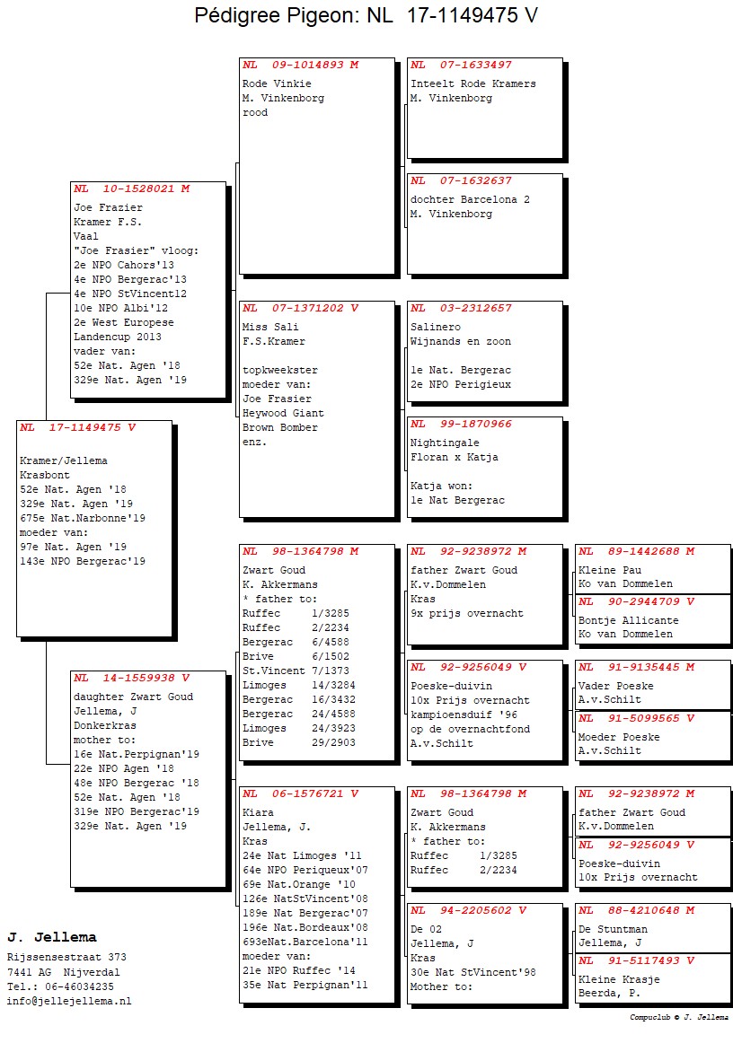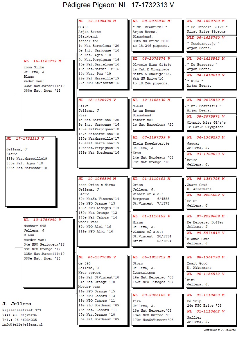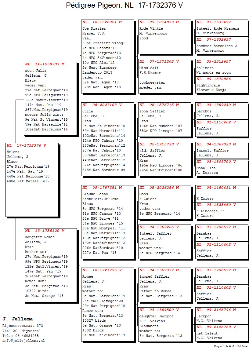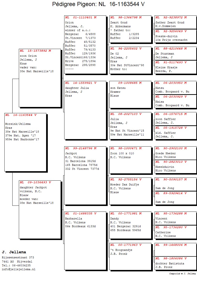 耶勒.耶勒瑪和巴賽隆納,總是被緊密聯繫在一起。很多年來,耶勒都在根據這項賽事選拔最優秀的賽鴿。只有最具實力的賽鴿才會被留下來,這樣的方法得到了回報。如同耶勒所說:你不能僅靠營養就在巴賽隆納取得好成績。遺傳扮演著更重要的角色,這就是汰選發揮的作用。耶勒再次做到了:他對巴賽隆納經典賽的完美駕馭,祝賀!