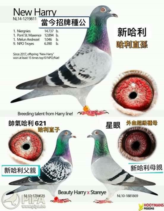 ▲本鴿祖父&外祖父是銘鴿“新哈利”,出自“帥氣哈利621”X“星眼”