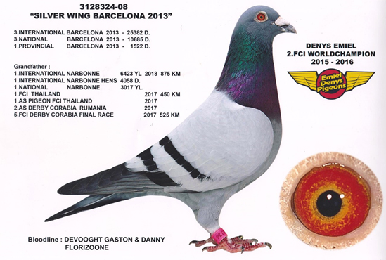 “巴賽隆納銀翼” B08-3128324灰公,2013年巴賽隆納國際賽 25,382羽3名。
