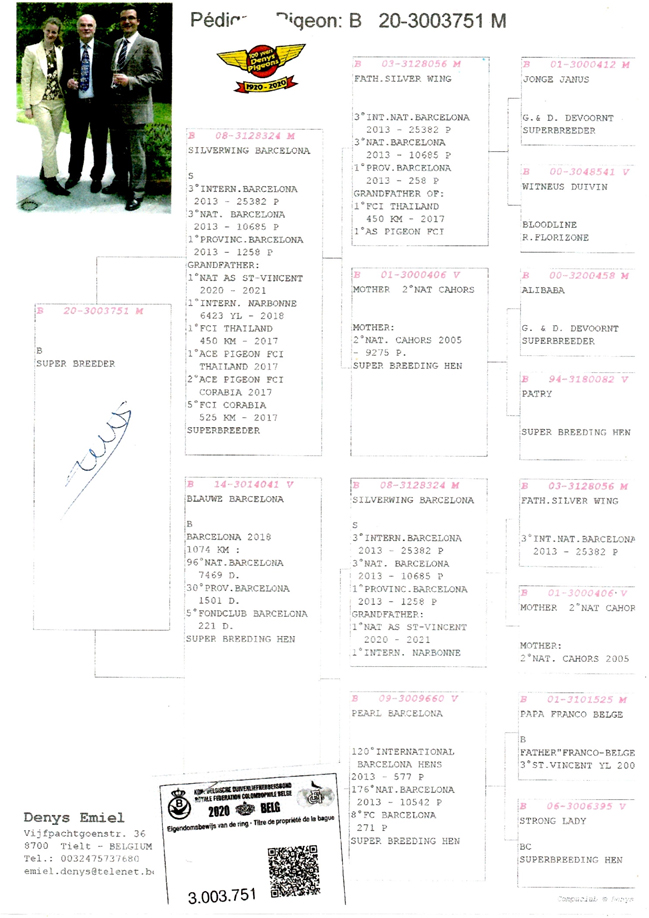 “巴塞隆納銀翼751” B20-3003751灰公 血統書