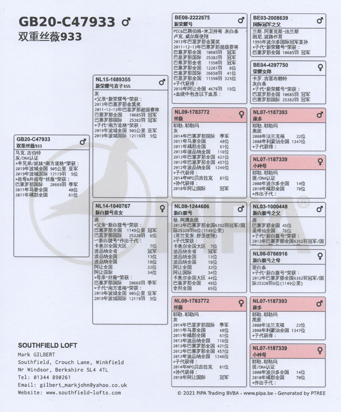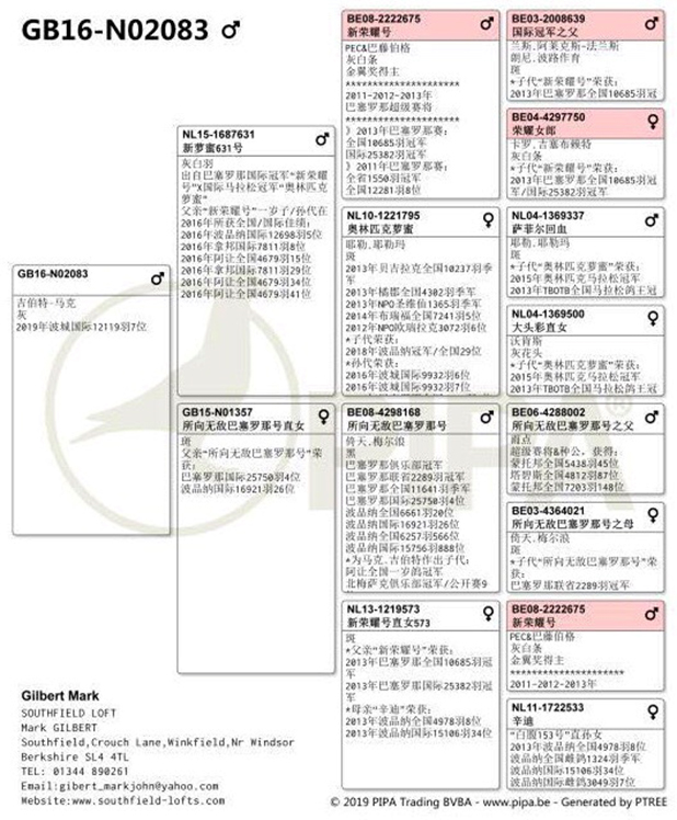 2019年波城英國全國冠軍鴿GB17-N01491斑公(國際12.119羽4位)中文翻譯血統書