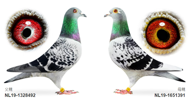 ●母鴿:NL19-1651391 “新榮耀號直女391”,出自“新榮耀號” X “薇樂”