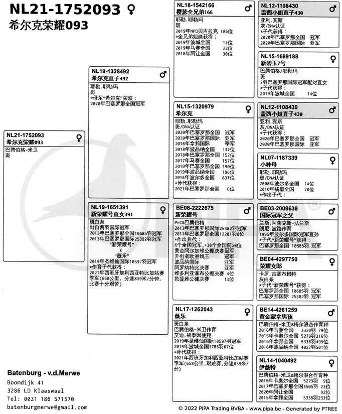 “希爾克榮耀093” NL21-1752093斑母 中文翻譯血統書