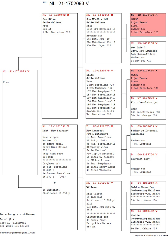 “希爾克榮耀093” NL21-1752093斑母 血統書