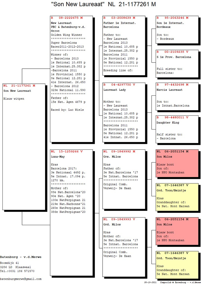 2021年馬賽全國冠軍(克裡斯托夫.莫特曼斯) – “新榮耀號”之曾孫代