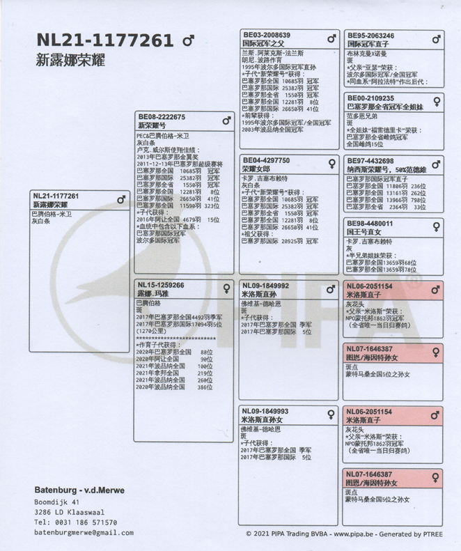 “新榮耀號直仔261” NL21-1177261灰白羽.公.中文翻譯血統書