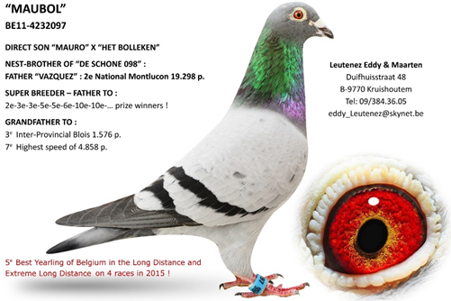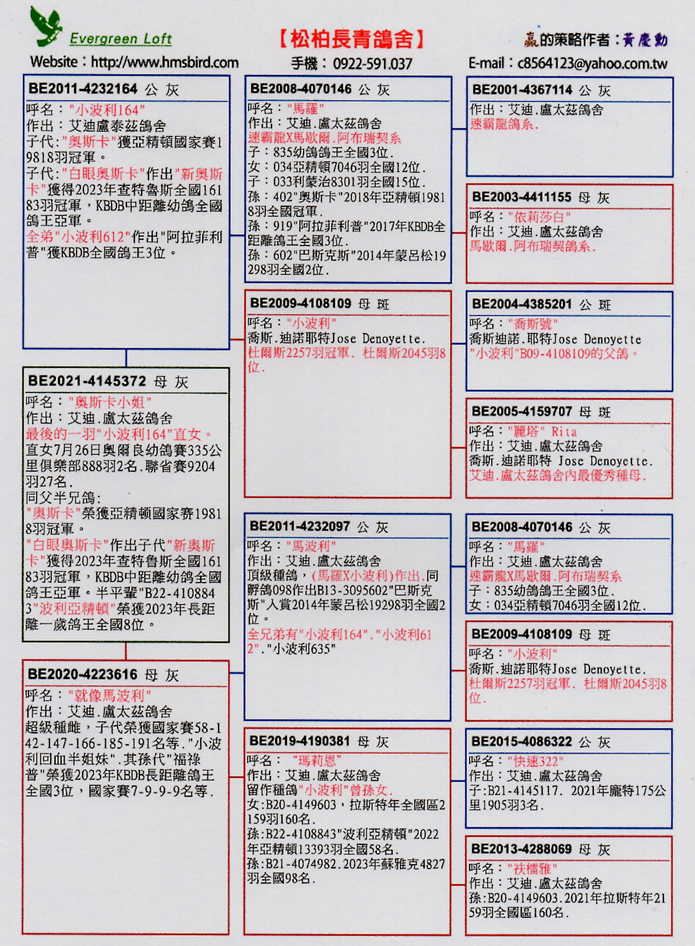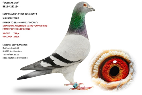 父鴿:B11-4232164灰公 "小波利164",超級種鴿。