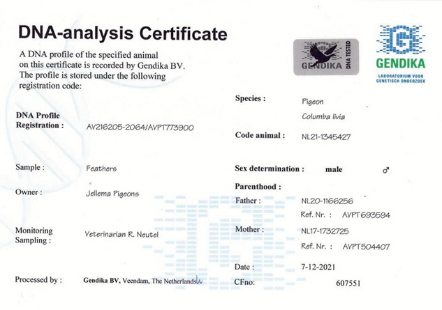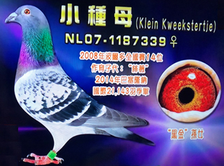 ●母鴿:NL17-1732725“希爾克直女725”,耶勒瑪原舍,出自“希爾克”