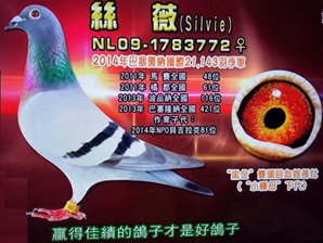 1.“席爾維婭”:2015年“長距離聯合會2000”俱樂部長距離鴿王冠軍