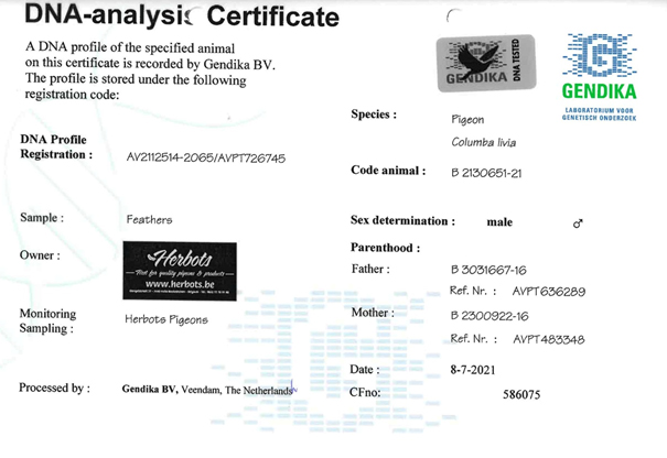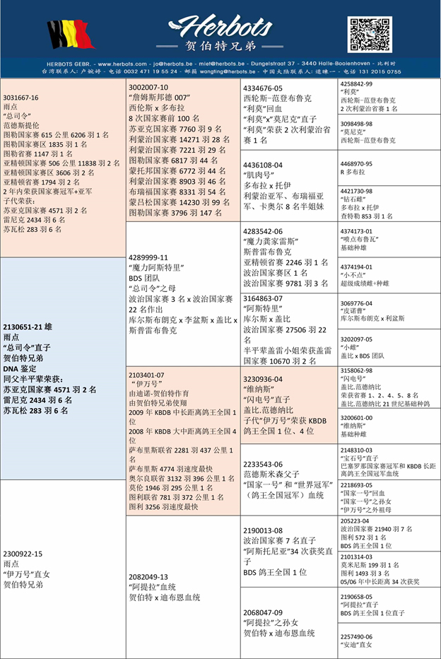外祖父鴿:億萬號B07-2103401斑公,本身入賞:2009年比利時K.B.D.B.中距離全國鴿王1位。