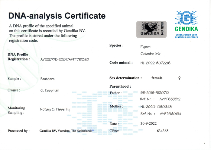 父鴿:BE19-3130712灰白羽.公. 母鴿:NL20-1080643班母
