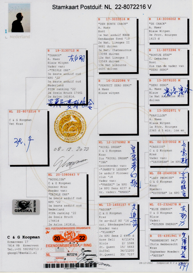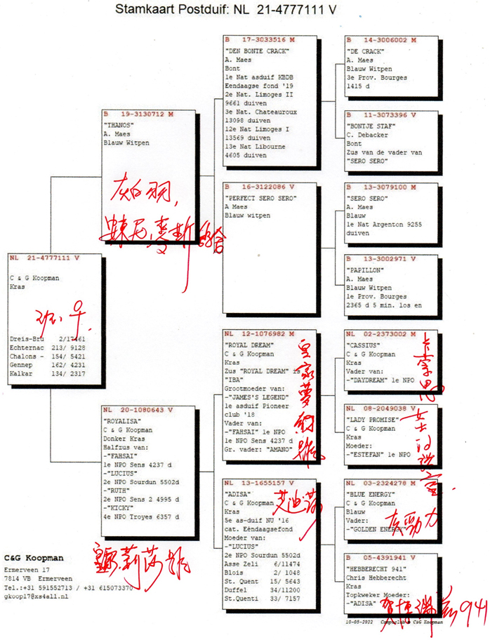 “考布曼新超級鴿3個1” NL21-4777111斑母 血統書