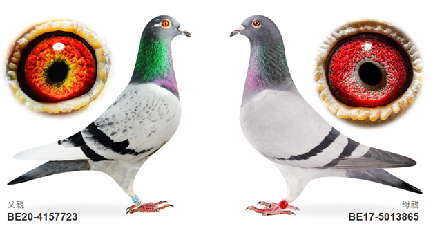 ●母鴿:BE17-5013865 “帽子戲法直女865” ,出自2羽波治全國冠軍 (“帽子戲法”x“霹靂朵拉”)。
