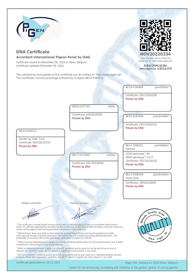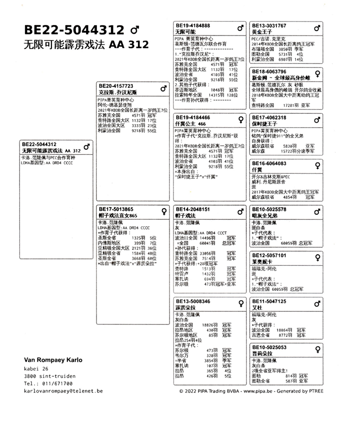 BE22-5044312 灰白羽.公. “蘇雅克冠軍”直子312 中文翻譯血統書