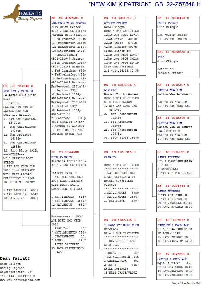母親是KBDB全國長距離鴿王冠軍“派翠克”直女