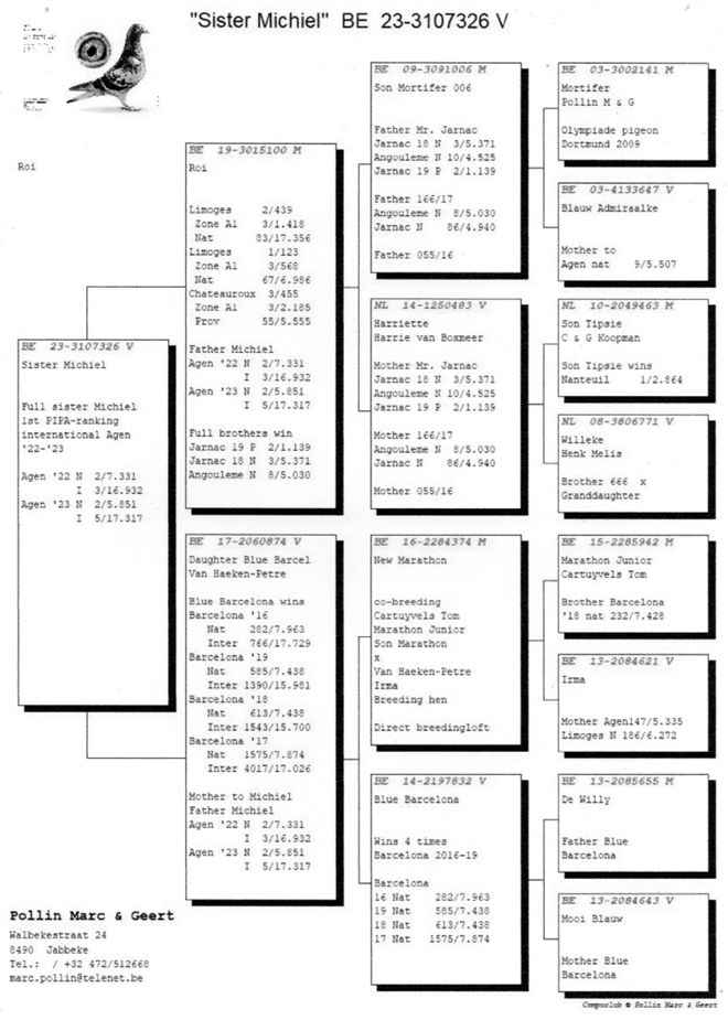 Marc and Geert, "Michiel" perfectly reflects the class of the Pollin pigeons and we wish you lots of success.