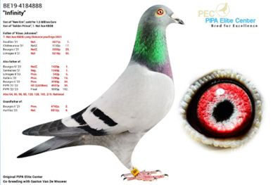●母鴿:BE19-4184584 “新金姆直女584”,與葛斯頓.范德瓦爾合作育種
