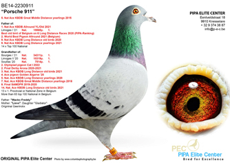 —「新金姆」後代獲得:PIPA排行榜比利時4場全國賽最佳幼鴿6位
