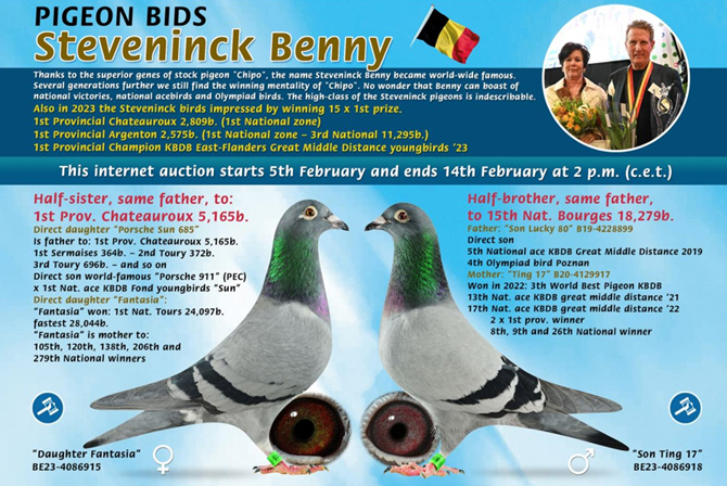 比利時中距離強豪賓尼.史帝文鴿舍超級種鴿:B03-4329022 公 ”氣魄號”