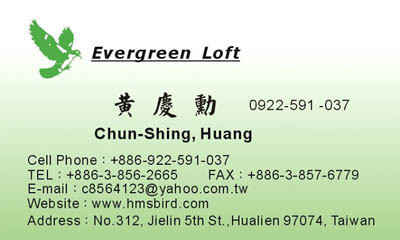 黃慶勳—台灣屏東縣人,2008年於花蓮港退休,結束長達30年的公務人員生涯後,全心全力投入賽鴿的行列。過去常利用公餘在國內各鴿刊發表銘鴿專文,一系列「嬴的策略」文章深獲好評。自1986年松柏長青鴿舍成立,親自參與競翔比賽,成績從名列前茅及五關綜合冠軍,到全會歸返數羽的伯馬成績皆獲得過。