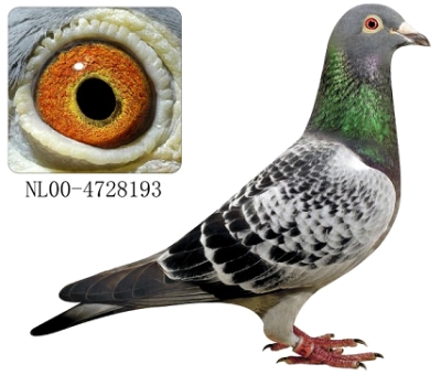 9、(艾瑪文之光)NL00-4728193灰斑公,獲得2002年荷蘭全國長距離鴿王亞軍,奧林匹克荷蘭代表鴿,入賞奧爾良N.P.O.全國9.188羽冠軍,亞比利斯13.020羽亞軍,奇梅10.000羽全國4位等,屬考布曼鴿舍世界銘鴿小迪克全姊茱蒂(Judy)NL98-5821399直仔。