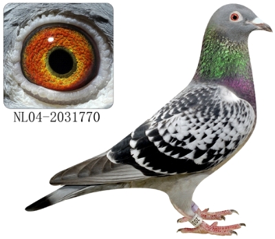 10、德基號Dirky.NL99-1585505(考布曼作出小迪克直子)超級種鴿,為荷蘭彼得.文斯特鴿舍珍藏,作出直仔“達文西”NL04-5435151 斑公入賞:荷蘭全國N.P.O.亞比利斯Ablis7.946羽597公里冠軍,荷蘭全國Menen 16.733羽333公里亞軍。同孵弟鴿(Darryl達利號NL99-1585506)又作出N.P.O.豪登22.547羽冠軍,Gennep 1.656羽冠軍,Zutphen2.916羽冠軍,及2004年全省一日賽鴿王冠軍。