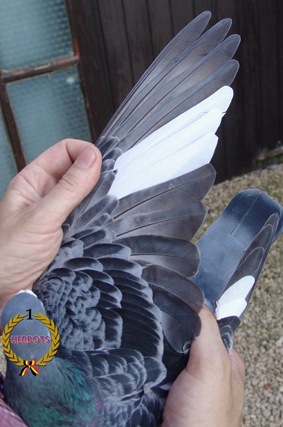 比利時布瑞福(Brive)國家賽10.082羽冠軍鴿:B08-5062128 班白羽公 翅羽