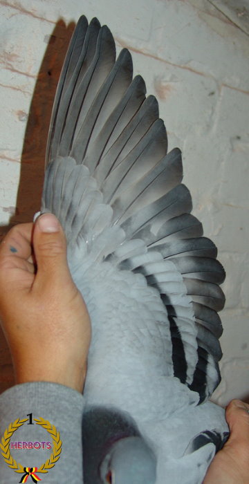 利蒙治一歲鴿國家賽季軍: BE10-4101312灰雌 ♀ 翅羽