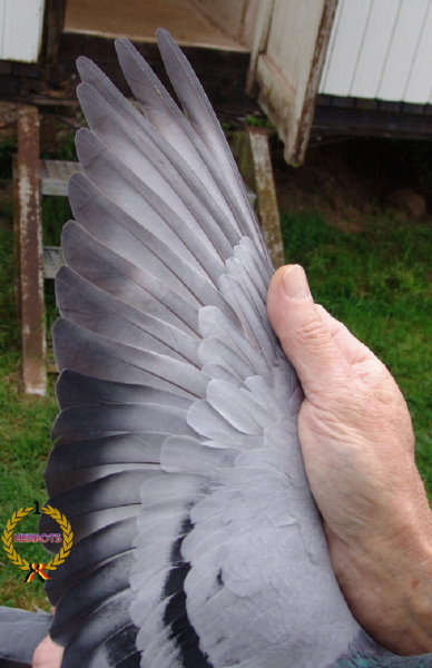 2011年比利時蘇雅克(Souillac)成鴿國家賽冠軍鴿B09-1023853灰公 翅羽