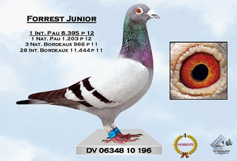 波城國際冠軍鴿DV06348-10-196 灰公 “年輕福瑞斯特”(Forrest Junior)血統書