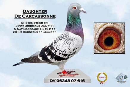 其母親榮獲2003年波爾多國際賽1.785羽冠軍,半姐妹榮獲2001年全國鴿王冠軍,2003年馬賽國家賽4.733羽亞軍。