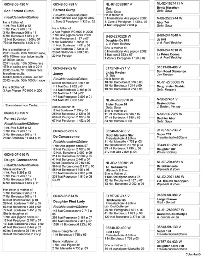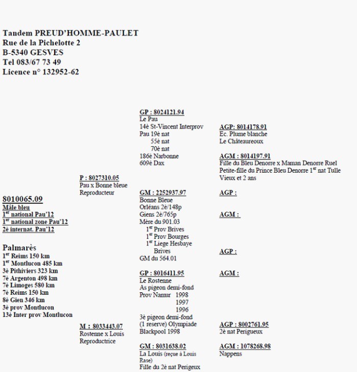 外祖父鴿:B05-8016411羅斯特納,1996-1998那慕爾全省中距離鴿王、中距離鴿王季軍、1998年黑池奧林匹克代表鴿。