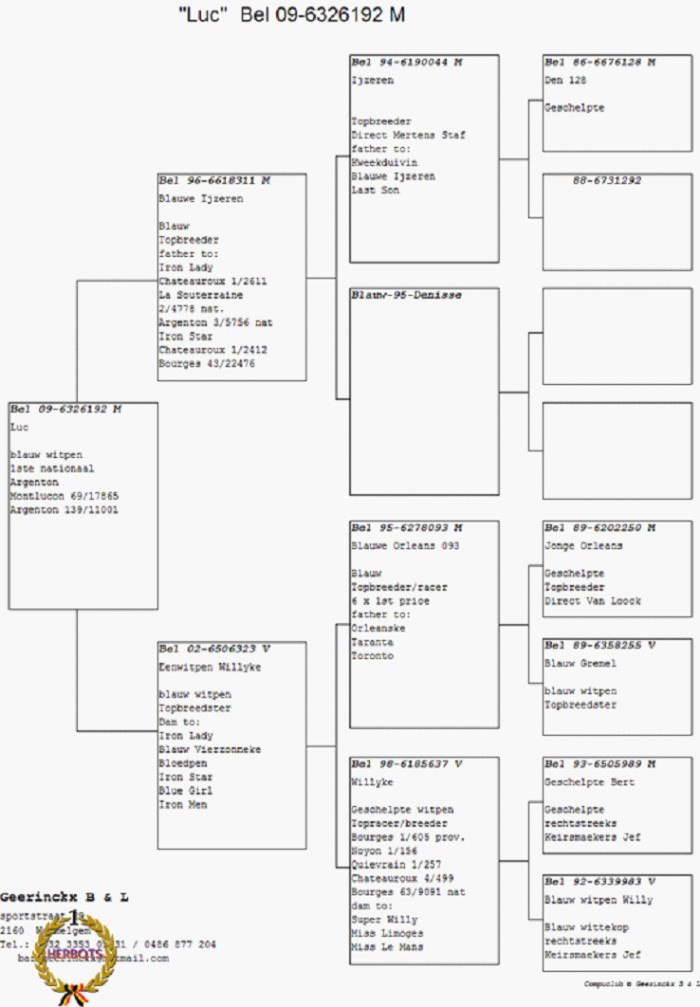 獲得成鴿組12.447羽全國冠軍為中距離強豪吉林克斯(Geerinckx L. & B. & J.)鴿舍,該舍B09-6326192灰公,於下午2點整打下鴿鐘,空中距離為558.366公里,同樣也是高分速的1642.25公尺/分獲得成鴿組全國冠軍。