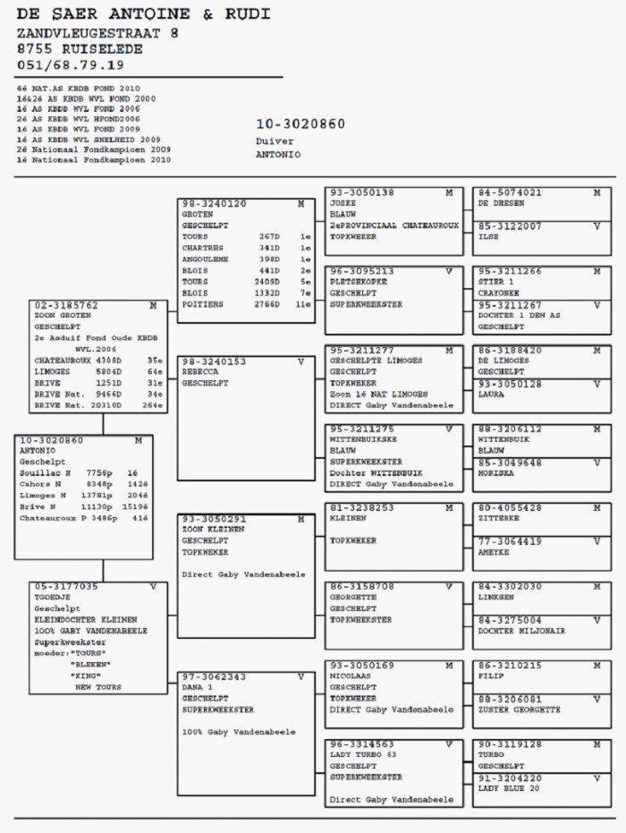 •外祖父鴿:B93-3050291 “嬌小號直子”,斑,頂級種公,出自蓋比.凡德那比勒原舍。