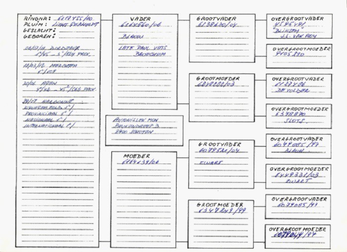 祖母鴿:小堅果 4165073/00,入賞185次,其中9次獲得冠軍,出自圖勒號X 世界小姐號。