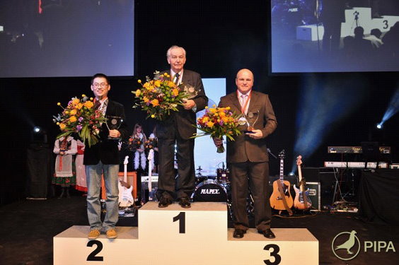 圖5: 梁新奇先生,代表郭維城先生(左)和安德列•德拉帕(右)在2011年波茲南奧林匹克領獎臺上