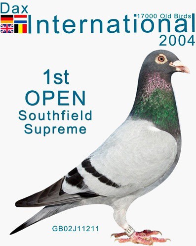 英國首羽獲得國際賽冠軍鴿,2004年達克斯(Dax)國際賽17.000羽總冠軍鴿。