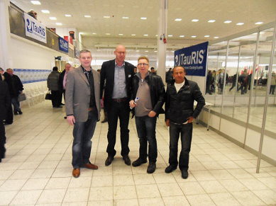 在一月二十四日一大清早早上5點半我開車載著路易和我的歐洲助理貝特一同驅車趕往德國杜塞爾多夫,原定早上9點的飛機11點到維也納然後和楊赫爾曼碰頭再坐大巴2小時到達目的地尼特拉。誰知道等我們驅車2小時趕到杜塞爾多夫機場,才得知當地安檢人員搞罷工現場許多航班即時取消。我當時想既然來了,不如試試運氣吧!畢竟我們的航班可能還要等段時間。隨即我們排了很長的隊,期待著現場服務人員給我們安排。當我得知我們的航班可能不會取消,我十分的高興。大約過了45分鐘左右我們成功的檢票,托運了隨機行李後等待著登機。誰知剛坐下咖啡都沒端起,機場服務人員說我們的航班取消了,要我們一起下樓取行李。唉~~~我當時想這就是生活吧!呵呵,我的助理路易問道這該怎麼辦,我們回去嗎?當然不是,我答道。我們開車去。我的“傑瑞森”還在等著我呢!這次我有一羽賽鴿入賞2013年奧林匹克鴿長距離500-700公里賽績鴿。無論如何我是一定要到的。路易說這個開銷可大了而且十分的勞累,因為要驅車穿越德國和捷克整個路程要1300公里。可能要驅車11個小時左右!沒關係,我隨口答道。我們三人一同隨隊伍下樓取完行李後一起去停車場取車出發。