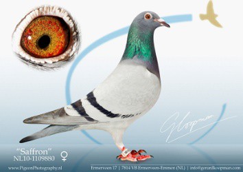 貝勒.鐸娜與聖諾瑞塔的母親是我最新給予超級種雌的薩芬(NL10-1109880);薩芬這次已經不是第一次給我驚喜了。她於今年已經給我帶來了傑瑞森---2013年度尼德拉奧林匹克賽績鴿稱號!不僅如此,她的半兄就是榮獲此次485公里亞軍的雷童!
