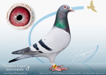 尾號562的父親金色卡布利B09-6040496灰公,來自奧林匹克賽績鴿家族。