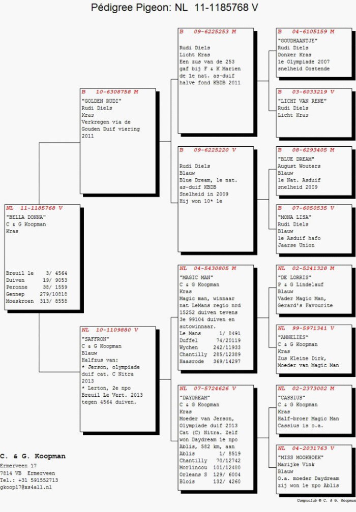 榮獲第3、4名的是同孵鴿,貝勒.鐸娜(NL11-1185768班母)血統書,來自我的黃金配對金色瑞迪與薩芬!