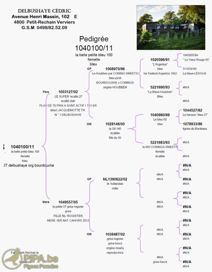 - 外祖父鴿:NL02-1390622 “荷蘭號”, 暗麒麟花