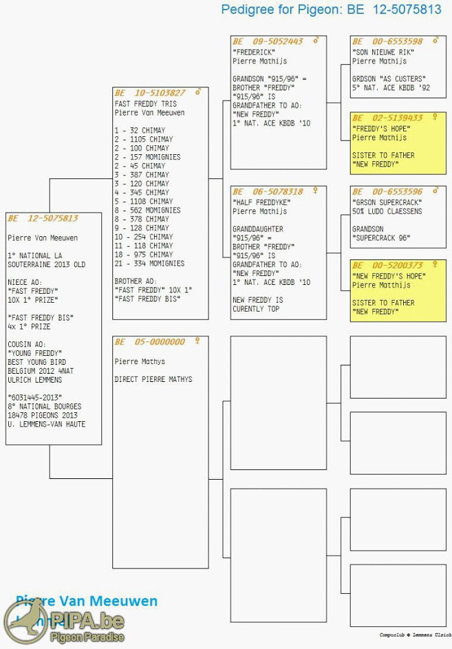 皮埃爾•馬泰斯,出自’“新福雷迪”10年KBDB全國中距離鴿王冠軍的姑媽