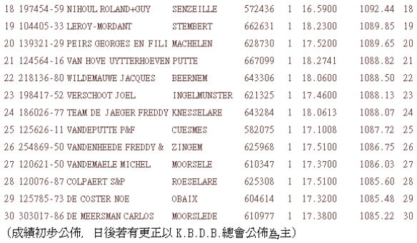 獲得第2位及第6位佳績的是強豪DESAER ANTOINE RUDY(狄薩爾.魯迪)鴿舍。